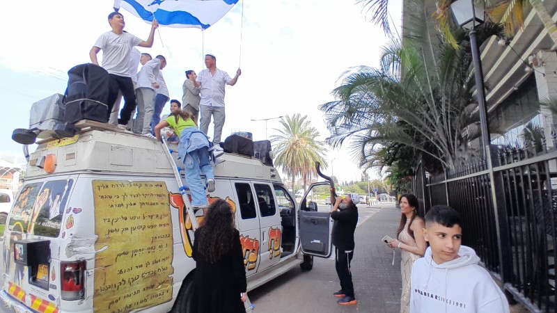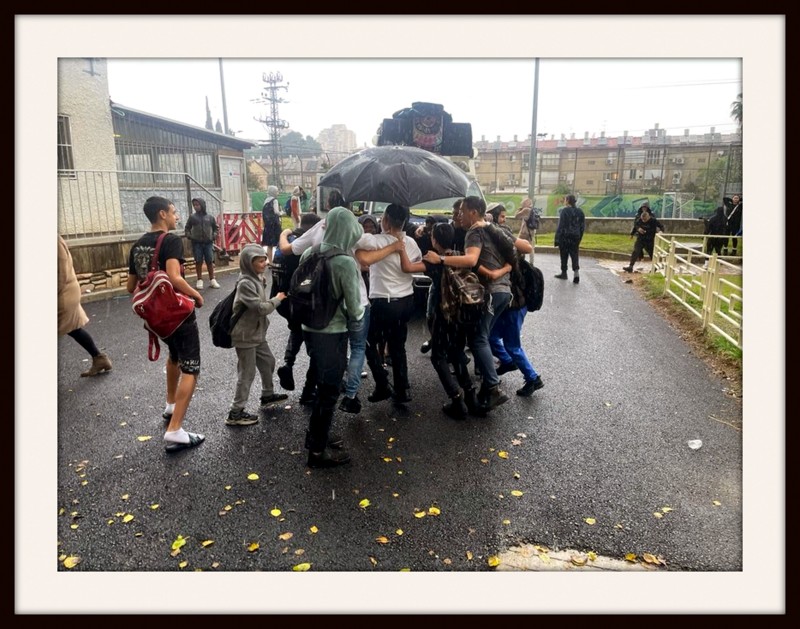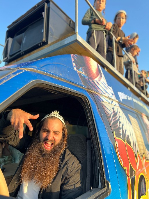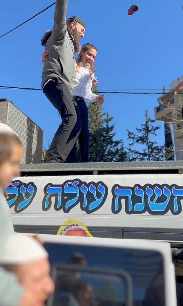 באמצע האירוע הסוחף, רב בית הספר לא נשאר אדיש, השאיל כיפה וציצית, ועלה על הוואן עם חיוך ענק! השמחה שלנו מדבקת – כולם מצטרפים!