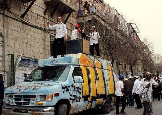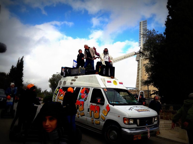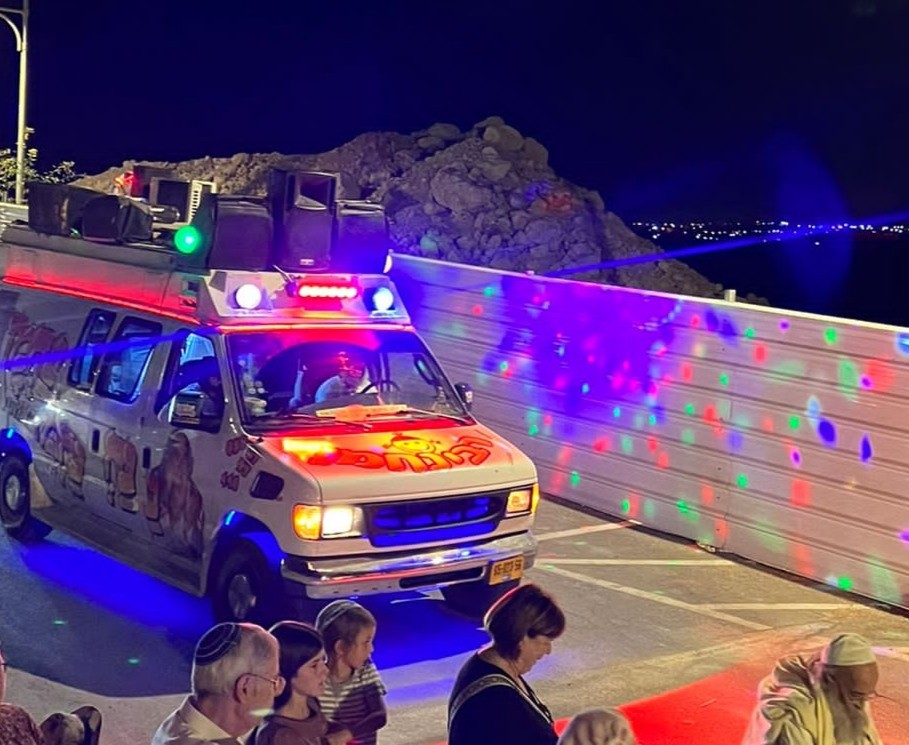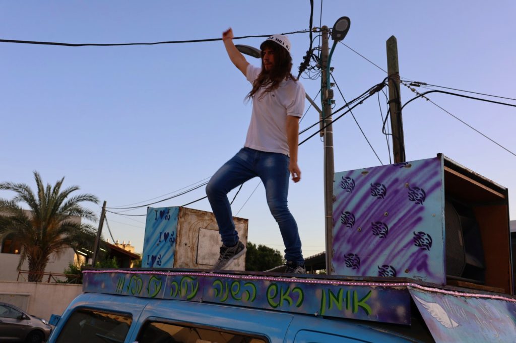 רגעי שמחה בתהלוכה מרגשת ברחובות ישראל. רכבי ההגברה,האנשים הרוקדים יחד יוצרים אווירה מלאת אנרגיה וחיבור.